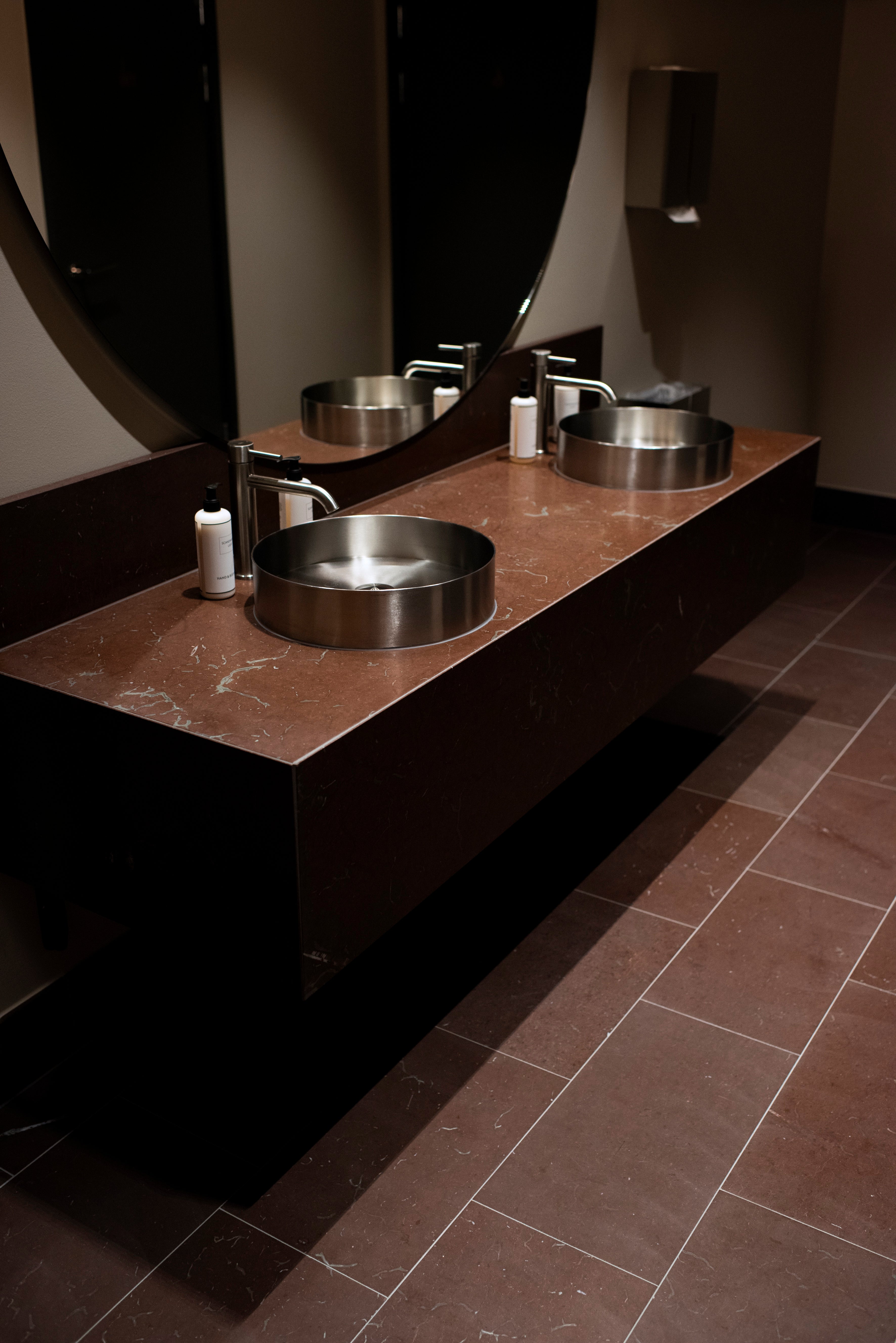 Badrum i slipad röd Jämtlandskalksten